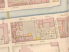 The property was home to three households at the 1840 census. Niels Severin Müller (1776-), a merchant (grosserer), resided on the ground floor with his wife Marie K. Poulsen and one maid.[8] Dorothea Catharina Olsen, widow of a distiller, resided on the second floor with her daughter Oline Charlotte Cecilia Olsen, governess Clara Theodora Hansen Gjersing (in wine merchant Hansen's household) and one maid.[9] Frederik Wind Schneider, a book printer, resided on the third floor with his wife Karen Elisabeth /née Kofoed) and one maid.[10]