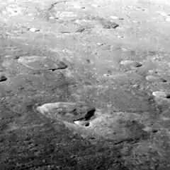 ![]() MESSENGER NAC image of Ovid crater (bottom center) and part of Pushkin crater (top) | |
