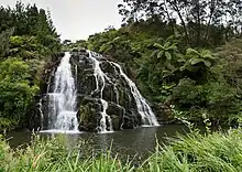 Owharoa Falls is a staircase waterfall in Waikato, New Zealand, located off Waitawheta Road in Karangahake Gorge, near State Highway 2, between Paeroa and Waihi,[1] and close to the small settlement of Waikino.