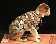 - Sergeant Stubby, a Boston bull terrier, the most decorated war dog of World War I and the only dog to be nominated for rank and then promoted to sergeant through combat. Among other exploits, he is said to have captured a German spy. Also on display at the Smithsonian.[28] He was also a mascot at Georgetown University.