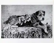 Owney (ca. 1887 – June 11, 1897), was a terrier mix[1] adopted in the United States as a postal mascot by the Albany, New York, post office about 1888. The Albany mail professionals recommended the dog to their Railway Mail Service colleagues, and he became a nationwide mascot for nine years (1888–1897).[2] He traveled over 140,000 miles throughout the 48 contiguous United States and around the world as a mascot of the Railway Post Office and the United States Postal Service. He was the subject of commemorative activities, including a 2011 U.S. postage stamp.[3]