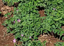 The inflorescence is an array of several flowers, each with five pink petals (some varieties have white flowers).