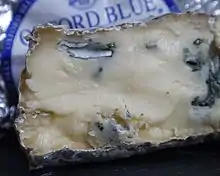 Oxford Blue is a variety and brand of blue cheese produced in Burford, Oxfordshire, England in 1995 by French baron Robert Pouget in the tradition of Stilton cheese (it was produced in a Stilton dairy) but with a creamier consistency especially when the cheese was allowed to mature.[1] It is a soft and creamy cheese that has tangy, aromatic and spicy qualities. By 2013, around five tonnes were produced monthly.