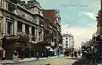 In 1917, the hall was converted into a legitimate theatre, and the musical The Better 'Ole, by the well-known cartoonist Bruce Bairnsfather, enjoyed a run of 811 performances.[11] In 1921, the building was renamed the New Oxford Theatre, and the Phoenix Society revived Ben Jonson's long forgotten Bartholomew Fair.[12] Later that year, the theatre was renovated by Charles B. Cochran, who presented a mix of films and plays.[1] A London production of the hit Broadway musical Little Nellie Kelly played at the theatre between July 1923 and February 1924.[13] In 1926, the theatre closed and was demolished.[8][14]