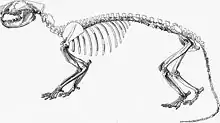 Oxyaena had a broad, low skull (20 cm long) with a long facial part and a massive lower jaw, while its body and tail were long and its five-toed limbs were short.