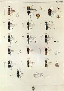 - ↑ Zeegers, T.; Schulten, A. (2022). Families of Flies with Three Pulvilli: Field Guide Northwest Europe. Graveland: Jeugdbondsuitgeverij. pp. 256 pp. ISBN 9789051070682.
