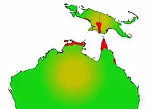 The poreless gudgeon occurs in Cape York and Arnhem Land in northern Australia and also southern New Guinea. Within Queensland the fish ranges from around Ingham to Cairns, particularly the lower Tully River. There is a separate population in the Hope Vale region and the Cape York population ranges from the Endeavour River up the eastern coast, around the tip and south to the Edward River on the Gulf of Carpentaria. The Arnhem Land population extends from the Reynolds River east to the Giddy River as well the Tiwi Islands. In New Guinea, the fish is found Fly River further west to around Timika.[2][3][5]