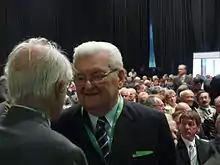 He was elected as a Member of Parliament from his party's Pest County Regional List during the 2006 parliamentary election.[35] Before the election's second round, Boross argued the left-liberal MSZP–SZDSZ governing coalition's advantage is unbeatable, therefore he received numerous criticism from the right-wing intellectuals.[39] He became a member of the National Security Committee following the election.[35] In the upcoming years the MDF gradually shifted to the left-wing under the leadership of Ibolya Dávid. Boross was strongly opposed to the nomination of Socialist ex-minister Lajos Bokros to the head of the MDF party list during the 2009 European Parliament election.[40] As a result, Boross resigned from his parliamentary seat on 31 January 2009.[35] Due to his conservative party's shift to the left, resulting in the expulsion of several prominent party members, Boross decided to break all ties with the present party leadership on 13 June 2009.[41] He finally left the party on 25 January 2010.[42]