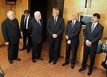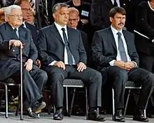 Boross served as political advisor to Prime Minister Viktor Orbán, whose party the Fidesz won the 1998 election and the MDF also involved in the government as a coalition partner.[36] Since then Boross was long considered a supporter of Minister of Justice Ibolya Dávid, who became leader of the MDF in January 1999, replacing Sándor Lezsák. Boross did not run again for the position of party vice-president during the election of officials.[36] His relationship with Orbán became conflictual by early 2001, even after replacement of ministers Attila Chikán and József Hámori. Boross also criticized the Orbán cabinet's economic policy and its biennial budget.[37] In 2003, Boross left the MDF's national board. He was elected President of the National Memorial and Tribute Committee in 2006, replacing Anna Jókai who had held the position since 1999.[38]
