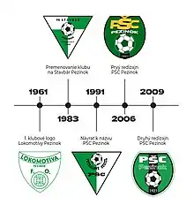 The first club logo was spotted in the pre-match Bulletin of the Lokomotíva Pezinok, in 1961. Since then, there have been four changes, first in 1983 when the name of the club was renamed to Stavbár Pezinok, then in 1991 when the name of the club PŠC Pezinok was given back, then in 2006 during the first redesign and last in 2009, as the second redesign.