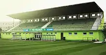 PŠC Pezinok (full name Pezinský športový club Pezinok) is an amateur Slovak football club based at the Pezinok City Stadium and competes in the third Bratislava League, the highest regional competition in Bratislava Football Association. The nickname Green-and-Whites, together with the club colors green and white, are linked to the story of the club's founding from 1921, when it was inspired by the kits of the Hungarian club Ferencváros Budapest.