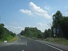 US 611 was widened to a multilane road from a point north of the PA 507 intersection north to the newly constructed PA 307 in the 1930s.[15] In the 1940s, the route was widened south to PA 507 along with a short stretch to the north of PA 348.[16] The section of US 611 between PA 590 and Dunmore was upgraded to a divided highway in 1958, with the section of the route leading into Dunmore moved to a new alignment.[17][18] In 1969, an interchange with I-81E (now I-380) was built with US 611 near the southern terminus of PA 507, at which point US 611 headed south along the freeway.[19][20] On December 3, 1971, the American Association of State Highway Officials approved the elimination of the US 611 designation.[21] On March 14, 1972, US 611 was decommissioned and PA 435 replaced the route between I-380 in Gouldsboro and I-84/I-380 in Dunmore. Signs were changed by April of that year.[2][22]