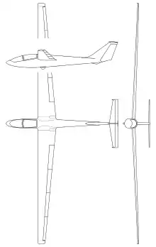 The Fecske was an all-metal aircraft. Its shoulder-mounted, two-part wing was tetrahedral in plan, with an unswept leading edge. Its core monocoque structure was unusual, essentially a box spar occupying about 45% of the chord with its upper and lower surfaces, stiffened with span-wise z-section longerons, defining part of the laminar flow aerofoil. The pre-formed dural sheet leading edge was supported by ribs and the rear wing was also dural-skinned, internally stiffened with polyurethane foam. Narrow chord, split, plain ailerons filled about 45% of the outer trailing edge and split airbrakes the inner 45%.[1][2]