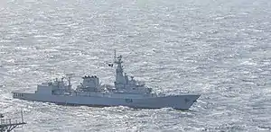 ![]() PNS Aslat (FFG-254), a F-22P Zulfiquar-class frigate patrolling off its deployment with U.S. Navy in the Indian Ocean in 2014. | |