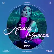 "POV" (an acronym for "point of view") is a song by American singer Ariana Grande from her sixth studio album Positions (2020). The song was released to US contemporary hit radio in the United States on March 23, 2021, serving as the album's third single. Grande wrote the song with Tayla Parx. And the song was produced by Mr. Franks, Oliver "Junior" Frid and Tommy Brown.