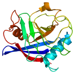 8. 1 2 3 4 5 6 Wang T, Yun CH, Gu SY, Chang WR, Liang DC (Aug 2005). "1.88 A crystal structure of the C domain of hCyP33: a novel domain of peptidyl-prolyl cis-trans isomerase". Biochemical and Biophysical Research Communications. 333 (3): 845–9. doi:10.1016/j.bbrc.2005.06.006. PMID 15963461.