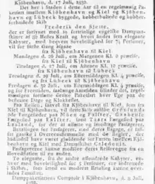 | Route | Copenhagen-Kiel (1830-43) Copenhagen-Lübeck (1830-42) Copenhagen-Stettin (1844). Copenhagen-Flensburg (1845). |