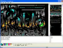 PabloDraw is a cross-platform text editor designed for creating ANSI and ASCII art, similar to that of its MS-DOS-based predecessors; ACiDDraw (1994) and TheDraw (1986).