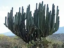 It was first described as Cereus weberi in 1896 by John Merle Coulter.[3] The specific epithet weberi honors the physician and botanist Frédéric Albert Constantin Weber. Spanish common names are "Candelabro", "Cardón" and "Chico". Curt Backeberg placed the species in the genus Pachycereus in 1960. Nomenclature synonyms are Lemaireocereus weberi (J.M.Coult.) Britton & Rose (1909), Ritterocereus weberi (J.M.Coult.) Backeb. (1951) and Stenocereus weberi (J.M.Coult.) Buxb. (1961).