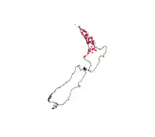 It is distributed in the upper North Island, from Northland to Taranaki. This species is known to be present in old water-works tunnels in the Waitākere Ranges,[1] west of Auckland.[2]