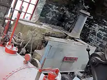 In 1963, Velinheli was in pieces in the railway's workshops at Gilfach Ddu, having been out of traffic since 1953 for major overhaul, a task which was never completed.[54] Whilst the majority of this locomotive was scrapped, certain items survive and are now on display within the National Slate Museum at Gilfach Ddu. Surviving items include: side tanks (complete with nameplate Velinheli on one side only), chimney, sand boxes and ash-pan. The identity of all the remaining parts cannot be confirmed as belonging to Velinheli, due to the swapping of locomotive parts, a common practice during the operation of the quarries' various railway systems.[49]