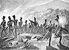 The conflict broke out again in the 1830s with the Dutch gaining early victories. Soon after, the war centred on Bonjol, the fortified last stronghold of the Padri. It finally fell in 1837[6] after being besieged for three years, and along with the exile of Padri leader Tuanku Imam Bonjol, the conflict died out.