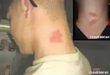 Once pederin is on the skin from the initial beetle contact, it may also be spread elsewhere on the skin. "Kissing" or "mirror-image" lesions where two skin areas come in contact (for example, the elbow flexure) are often seen.[8] Washing the hands and skin with soap and water is strongly recommended, if contact with a rove beetle has occurred.[10]