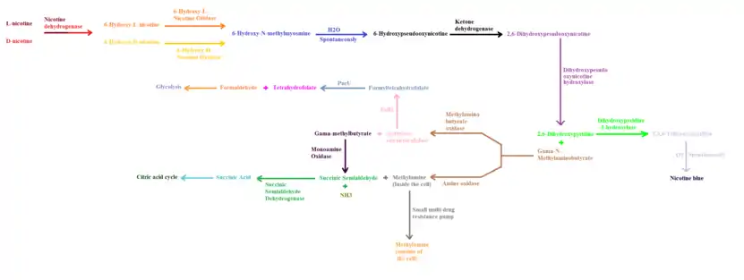 - ↑ Freudenberg, Wilfried; König, Kerstin; Andreesen, Jan Remmer (July 1988). "Nicotine dehydrogenase from Arthrobacter oxidans: A molybdenum-containing hydroxylase". FEMS Microbiology Letters. 52 (1–2): 13–17. doi:10.1111/j.1574-6968.1988.tb02564.x.