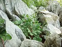 With its hairless leaves, P. daurica, does not seem to be adapted to a typical Mediterranean climate, but to rather more humid circumstances in summer. The population on Mount Orjen grows in forest consisting of silver fir, European beech, Turkish hazel, the maple species Acer pseudoplatanus and A. intermedium, and ash, and is further accompanied by widespread species such as European spindle, mountain cherry, drooping bittercress, Turk's cap lily, but also with endemics such as the Orjen iris.[6]