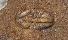 The hypostome is a convex subquadrate plate, positioned directly under frontal part of the glabella. It is comparable to the hypostoma of other trilobites and provides an argument that Agnostida can be regarded as specialized, simplified trilobites.[9]