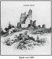 The ruins of the Pajrek Castle (German: Burg Bayereck) lie in the Czech Republic above the town of Nýrsko in the western part of the Bohemian Forest at a height of 505 metres above sea level.