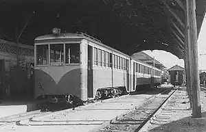 Initially, there were four steam locomotives constructed by Krauss & Co. of Munich,[5] and four trains ran in each direction daily. There were twelve stations in all, with trains taking one hour to travel over the line.[6] The line was initially a financial success. A motor-tramway service was introduced in 1908 and the line was electrified in 1926. After the end of the concession period, the line was purchased outright by the government in 1936 but there was little further investment in the line. By this time competition from buses running between Bangkok and Paknam was already impacting the railway's finances. During World War II the railway enjoyed a resurgence due to the impact of fuel shortages on the bus companies. Services were temporarily suspended in 1942 due to record flooding in Bangkok but services were restored soon after with twelve trips daily.[1]: 101–103 .