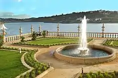 The palace and company factory are located in an isolate location along the riverway, built over an accentuated slope separated by gardens.[1]