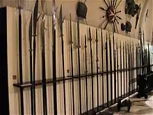 In 1604, the Order's arsenal was transferred to the Grandmaster's Palace by Alof de Wignacourt, and was housed in a large hall at the rear of the building. At the time, it contained enough arms and armour for thousands of soldiers.[1] The armoury was rearranged under Manuel Pinto da Fonseca's magistracy in the 18th century.[2]