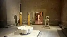 The first predecessor of this museum was a small "Arab museum" installed in Palace of Charles V in 1928, although a similar museum had existed in Granada since 1870. In 1942 its successor, the Archeological Museum of the Alhambra was installed here. Finally, in 1994–1995 it became the current Alhambra Museum, laid out in its present location on the ground floor of the palace.[11] The museum houses numerous artifacts and art objects originating in the Alhambra, ranging from the early Islamic period of Granada up to the Nasrid period, in addition to some other Islamic art objects from other locations. [11] The objects on display include 10th-century marble pieces from Madinat al-Zahra and other sites of the Caliphate era, fragments and panels of original decoration from the Nasrid palaces (including some of the lost palaces such as the Alijares Palace), Nasrid marble fountains and sculptures (such as a marble lion from the Maristan), and various other Nasrid-era furnishings. Among the highlights is the Vase of the Gazelles, one of the so-called "Alhambra vases", a huge and richly-decorated ceramic vase from the 14th century.[1]
