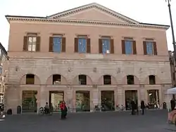 During the 19th century, the palace underwent major renovation by architect Giovanni Tosi, who transformed the previous historical loggia, giving it a neoclassical appearance that it still retains, and arranged some shops inside.[2]