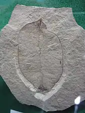 The Basal Angiosperms are represented by a single Nymphaeales water-lily species Nuphar carlquistii,[22] though a second member, Allenbya collinsonae, has been described from the Princeton Chert.[23] Wehr (1995) illustrated two fossils that were tentatively identified as fruits of the banana genus Ensete and the extinct myrtle genus Paleomyrtinaea respectively,[24] however further fossil finds resulted in the re-identification of the first as a N. carlquistii rhizome section, and the second is a seed mass from the same water-lily.[22]
