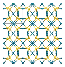 The crystal structure of PdS contains approximately square planar palladium centres and tetrahedral sulfur centres.[1]