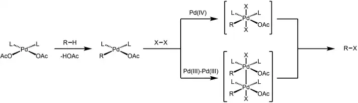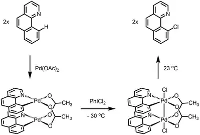 Acetoxylation of 2-phenylpyridine was also demonstrated to involve a dinuclear Pd(III) intermediate.[12]