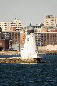 Palmer Island Light Station is a historic lighthouse in New Bedford Harbor in New Bedford, Massachusetts, USA.[2][3] The lighthouse was built in 1849 out of stone rubble. It was discontinued when the harbor's hurricane barrier was built in the early 1960s, as its location immediately north of the barrier was no longer an outlying danger and there are lights on either side of the barrier opening.