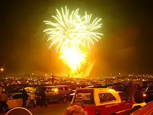 The 2015 edition was suspended on 17 September due to the Illapel earthquake that occurred on the previous day.[6] For the rest of the time the associated artistic show and the fireworks show that marked the closing on 20 September were suspended. In addition, the entrance fee was suspended to encourage visits to the gastronomic sector and camping area, which both remained open.[7] An activity called "Pampilla Solidaria" was carried out in order to raise funds for those affected by the earthquake. This was done on 20 September and included participation by: 31 Minutos, Chancho en Piedra, and Ana Gabriel.[8] In addition, Javiera Toledo, from the Tierras Blancas sector, was elected queen of La Pampilla 2015.