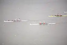 ![]() Huang and Pan (foreground) on their way to winning the LW2x B final at the 2010 World Rowing Championships | |||||||||||||||