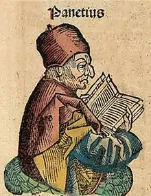 ![]() Panaetius, depicted as a medieval scholar in the Nuremberg Chronicle | |