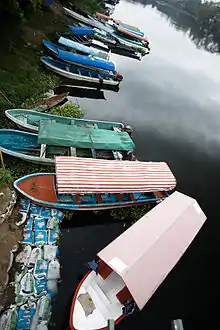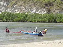 The panga is a type of modest-sized, open, outboard-powered, fishing boat common throughout much of the developing world, including Central America, the Caribbean, parts of Africa, the Middle East, and much of Asia. The original panga design was developed by Yamaha as part of a World Bank project circa 1970.[1][2][3] Pangas are commonly operated directly off beaches.[4] The name comes from the panga fish, which is commonly netted. The upswept bow of the boat resembles the machete or knife called a panga.