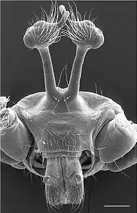 Male P. camiguin, frontal view, showing elongated eyestalks with pointed processes