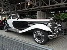 With a wheelbase of 142 inches (3,600 mm), the tubular-framed De Ville used a straight-six engine or a V12 engine from Jaguar Cars. The flowing wing lines and big headlights of the De Ville were styled to imitate the Bugatti Royale.[1] The cockpit of the De Ville was modern, without the exterior's pretense of pre-war styling.[2]