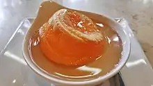 Papo de anjo or papo-de-anjo , roughly translated as "angel's double chin", is a traditional Portuguese dessert made chiefly from whipped egg yolks, baked and then boiled in sugar syrup.[1]