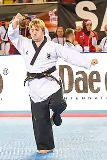 Para taekwondo is an adaptation of taekwondo for disabled sportspeople. The sport's main governing body is World Taekwondo (WT). New disciplines such as kyorugi and poomsae, both martial arts forms, have been developed for para-athletes.[1] On January 31, 2017, Para Taekwondo was confirmed as a sport for the 2020 Tokyo Paralympic Games at the International Paralympic Committee (IPC) General Assembly[2] the same year the WT became a full member of the IPC.