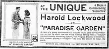 Paradise Garden is a lost[1] 1917 American silent comedy romance film starring Harold Lockwood and directed by Fred J. Balshofer. The film is based on a novel, Paradise Garden, by George Gibbs and has a feature role for Virginia Rappe, who would soon be more famous for her death under mysterious circumstances that were sensationalized by the media. Metro Pictures distributed the film.[2][3]