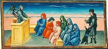 Beatrice explains that a vow is a pact "drawn between a man / and God,"[8] in which a person freely offers up his free will as a gift to God. Vows should therefore not be taken lightly, and should be kept once given – unless keeping the vow would be a greater evil, as with Jephthah's and Agamemnon's sacrifice of their daughters (Canto V).[9]